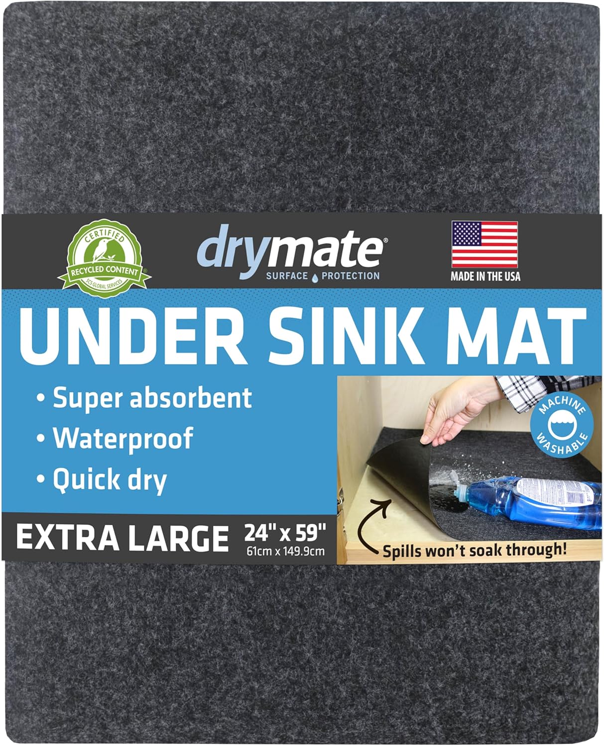 - PROTECTS CABINETS FROM LEAKS AND SPILLS: The Drymate Under The Sink Mat traps and contains the mess! Our mat is designed to protect your cabinets from leaks and spills.